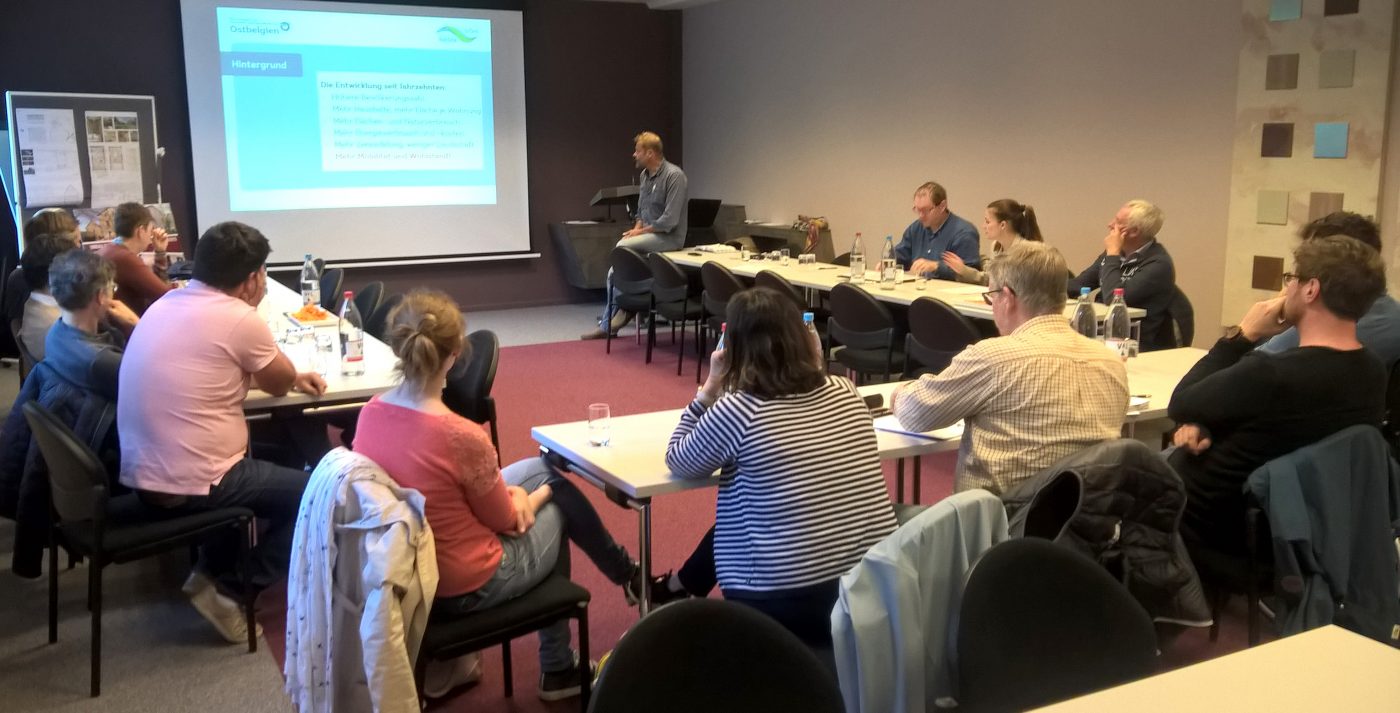 Die WFG Ostbelgien lud am Mittwoch, den 12. Juni 2019, zum Gründungstreffen für das neue LEADER-Projekt „Nachhaltig Wohnraum Planen“ der LAG Zwischen Weser und Göhl ein. 22 Akteure aus Gemeindepolitik und -verwaltung, Ministerien sowie zuständigen Diensten und Organisationen sowie Architekturbüros kamen zusammen, um sich über das Projekt zu informieren und Ideen zu sammeln und zu diskutieren.