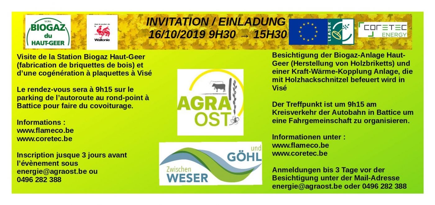 Organisiert wird der Besuch einer Biogasanlage in Haut-Geer mit anschließender Besichtigung einer Wärme-Kraft-Kopplung-Anlage in Visé.